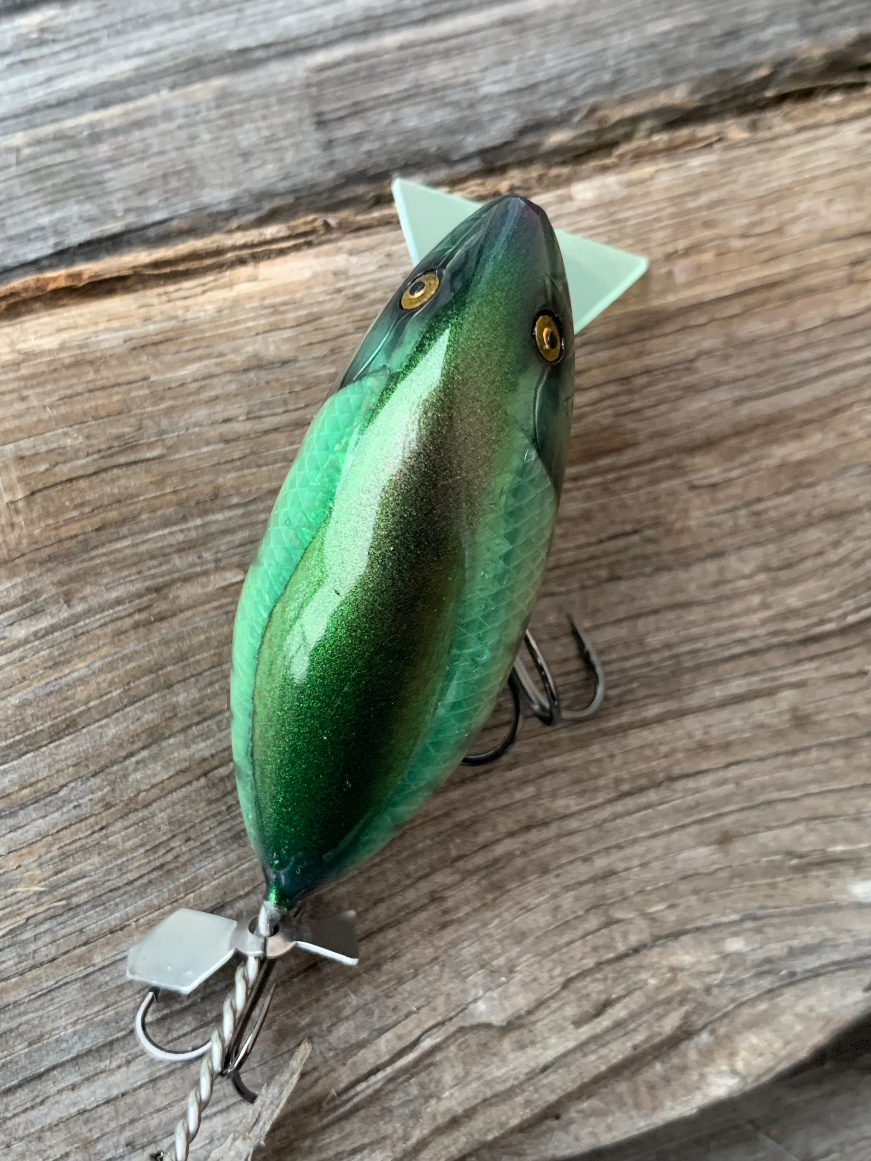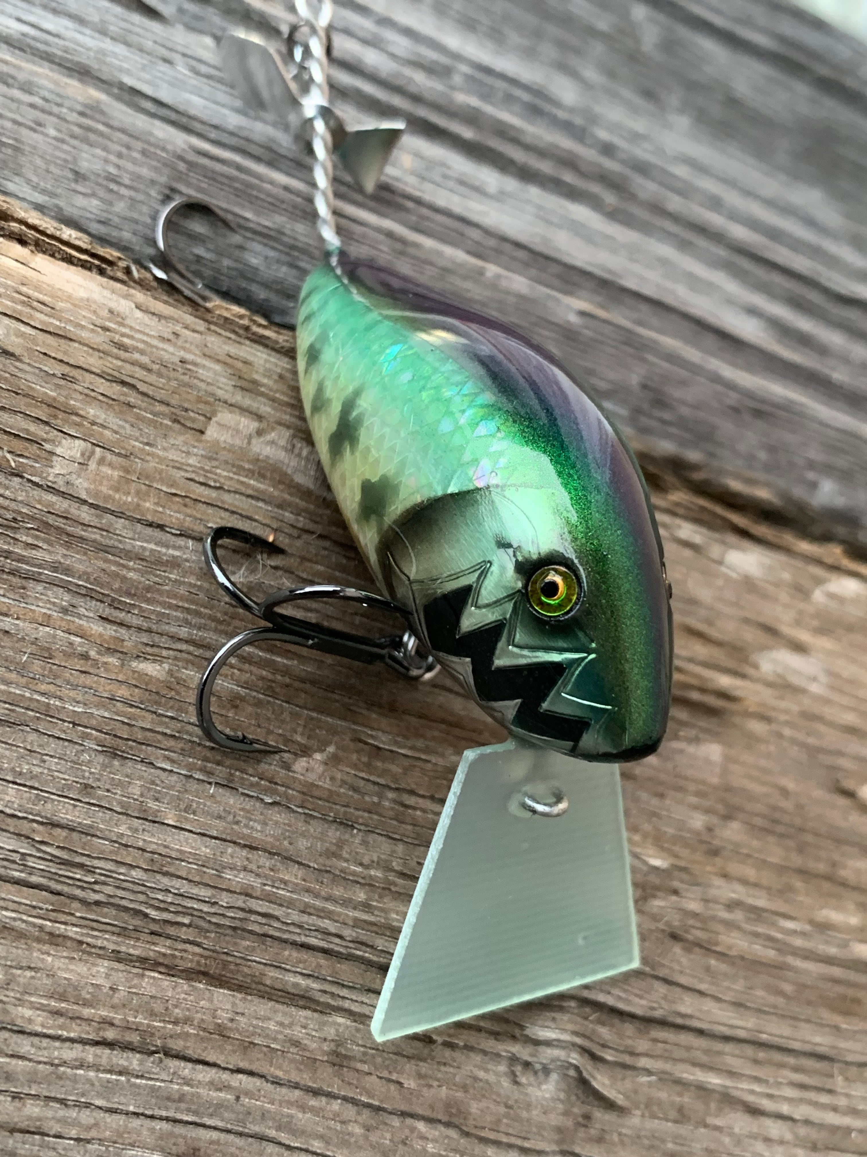 水面でのバタバタとした動きを殺さないようにカットしたペラとブレードを装備。クランクベイト本来の動きで誘いつつ、金属音をプラスしました。