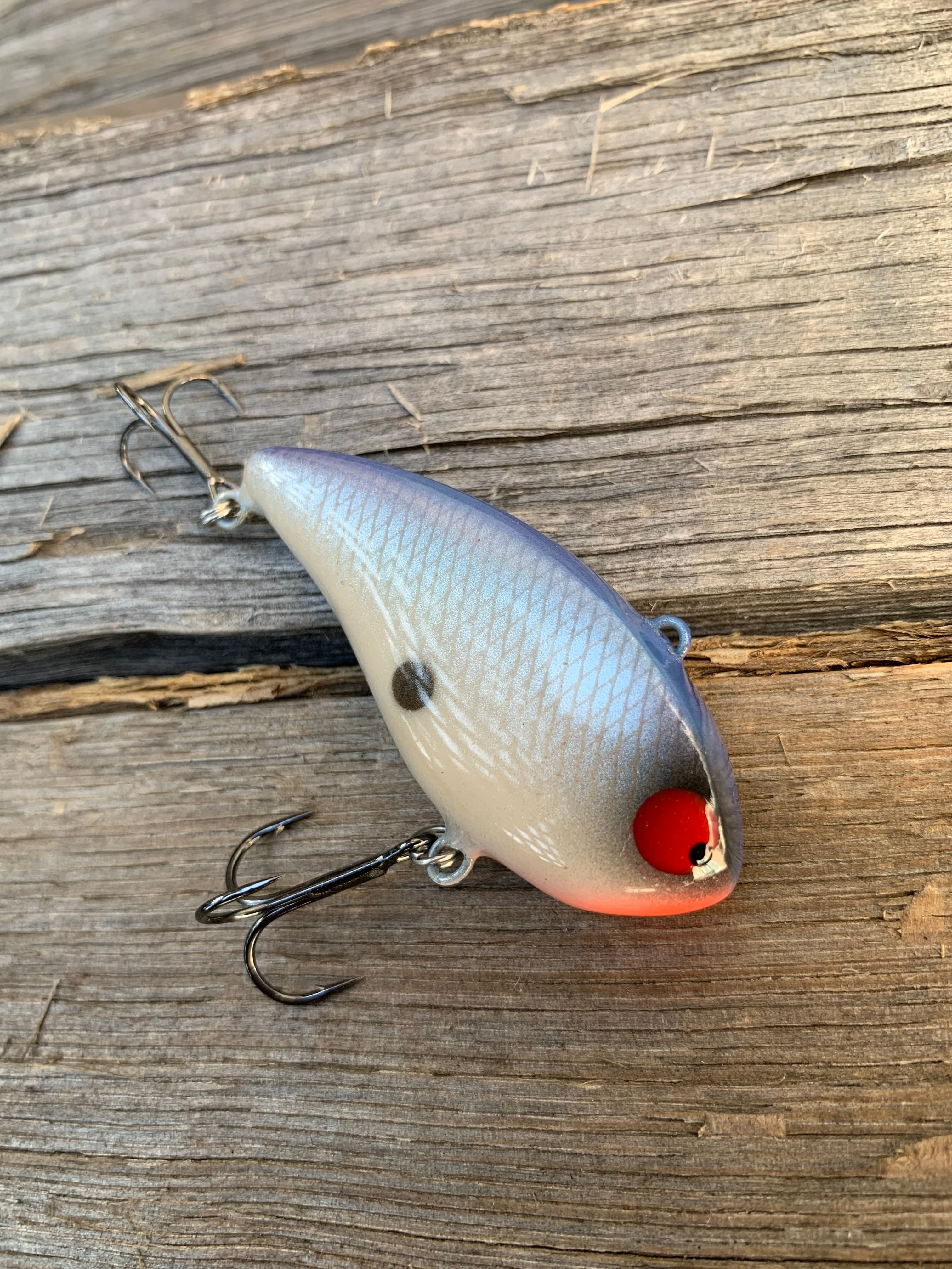 ダブルフックに交換し、シャローカバーに当てないように巻いてくる。遠浅な野池で沖のバスを狙う。などシャロー専用設計。ラトル音はチキチキ系のワンノッカー仕様。